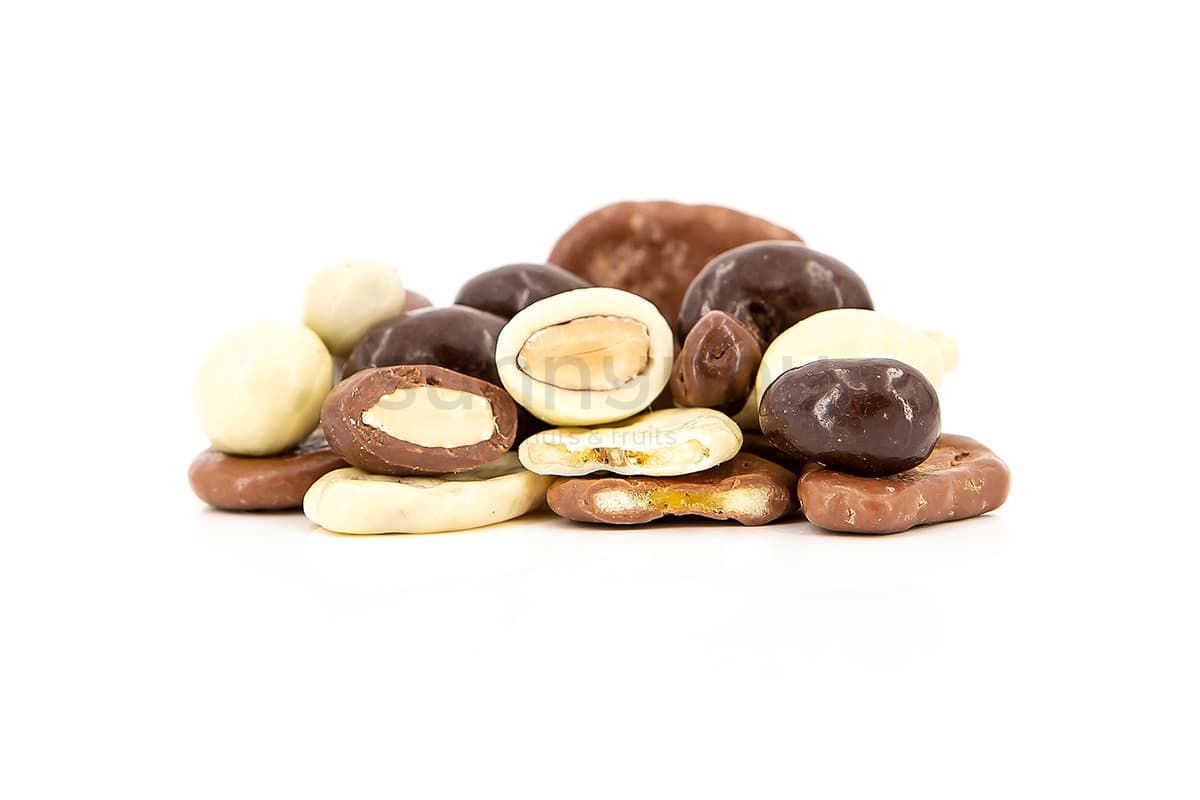 Mischung aus Joghurt-, Schoko- und Zartbitter Mandeln
